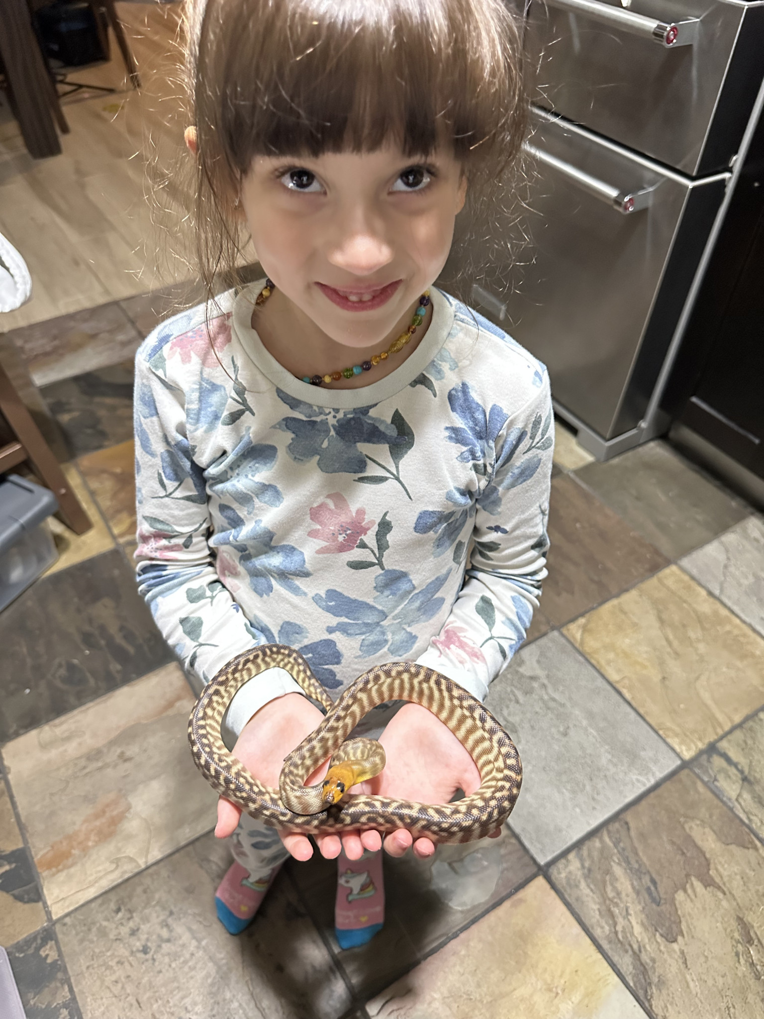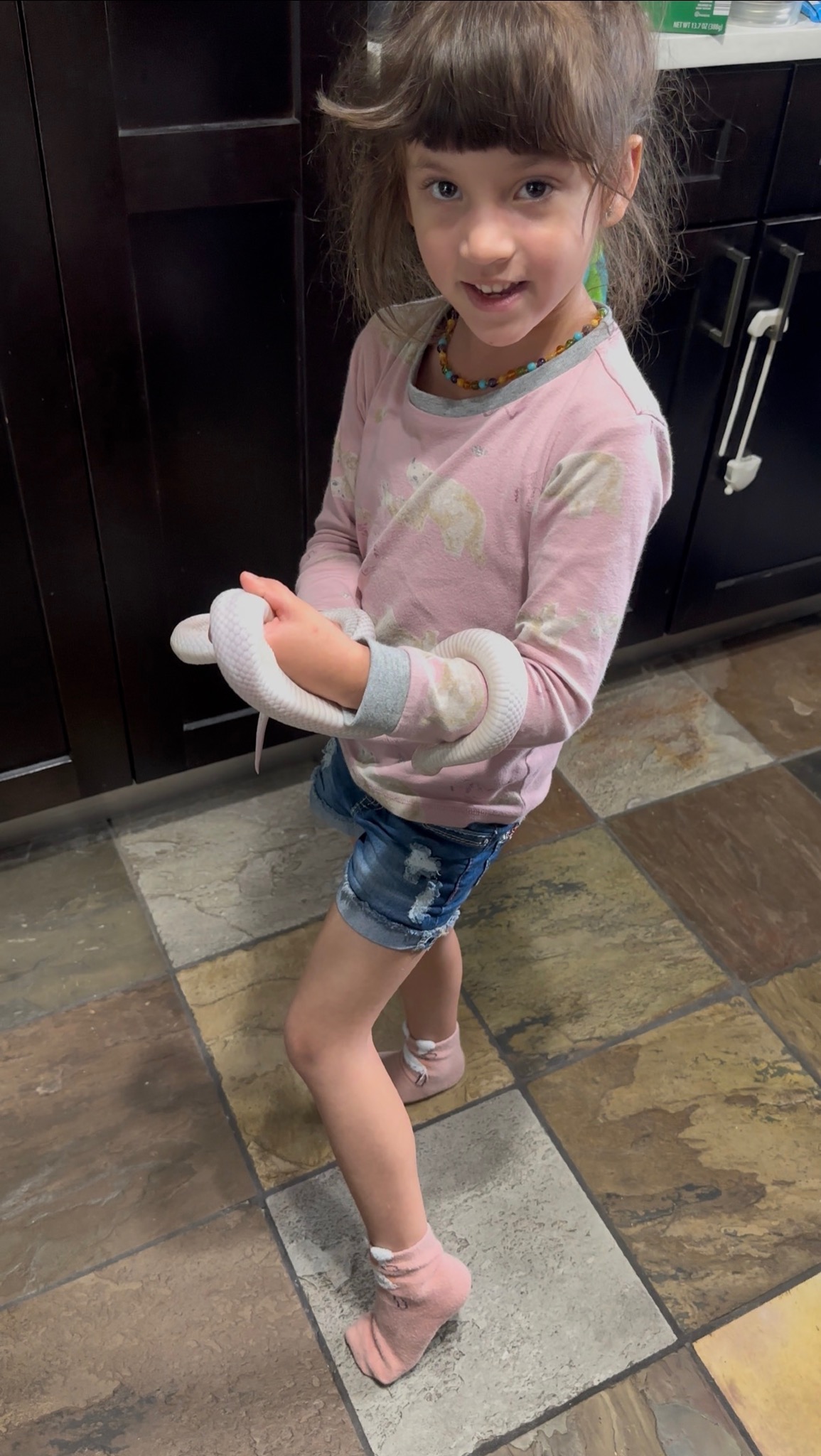Her favorite animal is a toss-up between Bailey, her Florida king snake; Brownie, her tarantula; and Pretzel, her bearded dragon. She especially loves reptiles. She also enjoys visiting our friend’s 8-year-old Asian water monitor named Max.