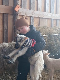 Learn MoreWilder isnt afraid to get dirty, he spends a lot of time working the land with his mom, tending to our sheep, feeding and caring for our lambs on our upstate NY farm.