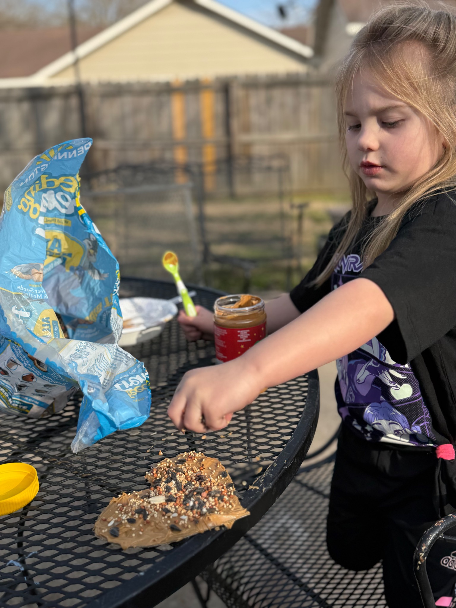 Her favorite outdoor activity is pretending to feed animals and spend time doing anything with her black lab.