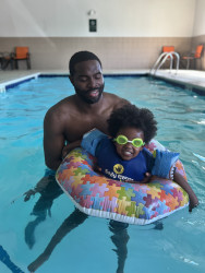 Swimming! He loves pretending he is different animals in the water like a frog, a fish, a shark, and even an alligator. He splashes, kicks, and zooms around like he’s in the wild. He says swimming makes him feel like he’s part of nature and one of the animals.